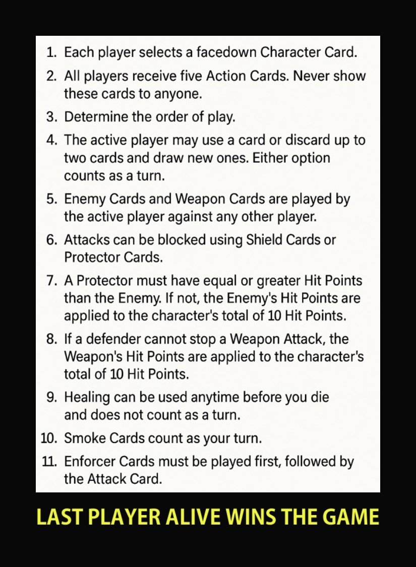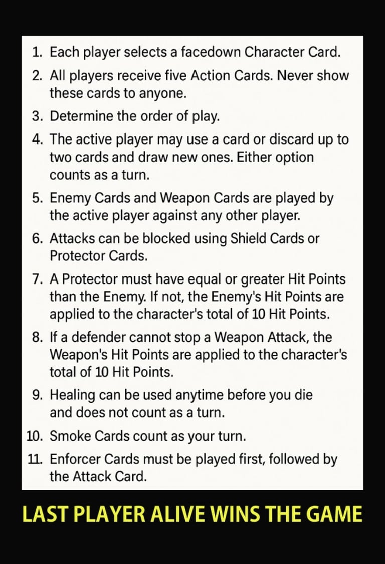Cards you were unable to defend are now "Damage". Place this next to your Character with all numbers exposed, so all players count your Damage total.